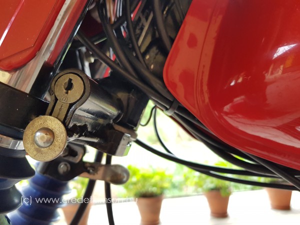 Zadi gyújtáskapcsoló, ez a kulcs nyitja a kormányzárat és az oldalfedelet.