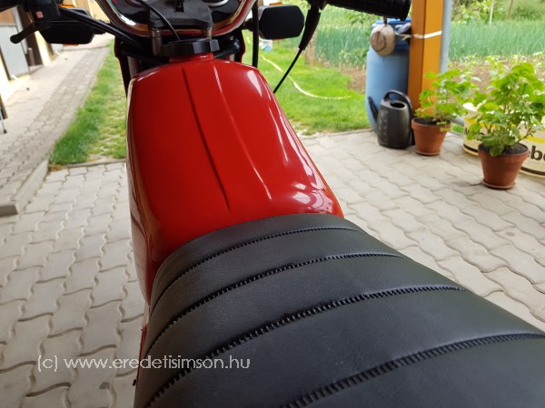 Elsőre talán feltűnő kárminpiros (karminrot RAL3002) nagyon jó minőségű fényezés, mely itt nem csak a benzintankon, hanem az oldalfedeleken, lámpaidomon és a sárvédőkön is megjelenik. Ezt kiemeli a krómhatású feliratos dekormatrica.