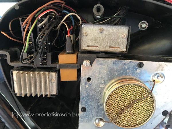 Hagyományos tirisztoros gyújtás, DDR tirisztorral, jobbra mellette az ELBA feszültségszabályzó, irányjelzőrelé egysége, illetve balra alul az EWR hűtőbordás védőelektronika. Már nagyobb méretű a légszűrő.