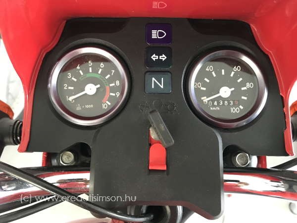 Jobb oldalt a km óra, míg balra a fordulatszámmérő kapott helyet, közötte a három visszajelző van központi helyen. Az S51 sorozatoktól eltérően természetesen nincs visszajelző az órákban. Sajnos itt is jelentkezett ezekre a műanyag mutatós óráknál előforduló elöregedés, így letörtek a mutatók.