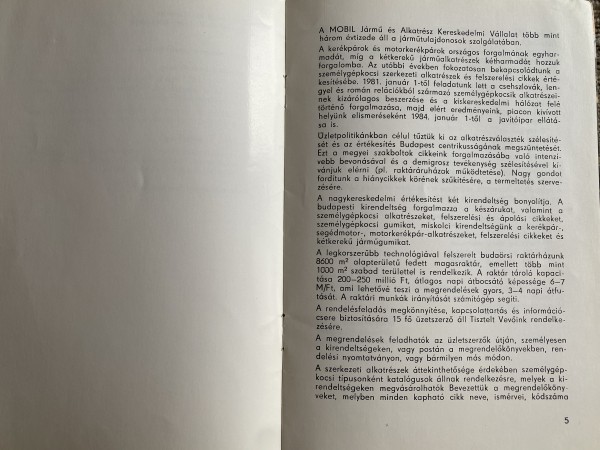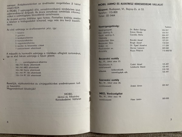 Mobil Kiadvány Jármű és Alkatrész Kereskedelmi Vállalat 1976-ban vette fel a Mobil nevet, melynek tájékozató füzetét kaptam meg egyik barátomtól, nézzünk is bele, mit tartalmaz
