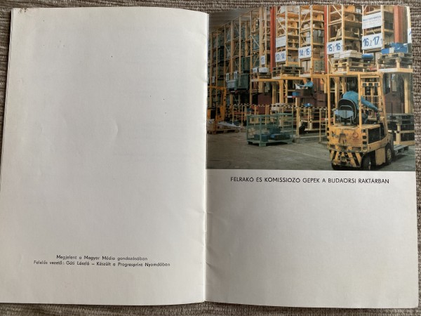 Színes fotó a budaörsi raktárról és az előszó olvasható.